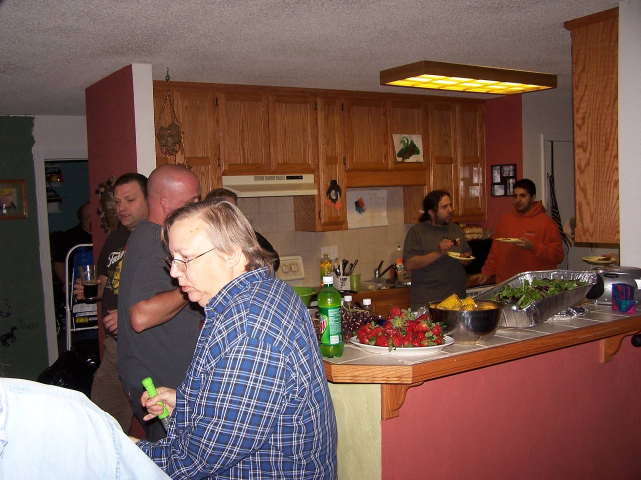 View of the kitchen during a party.