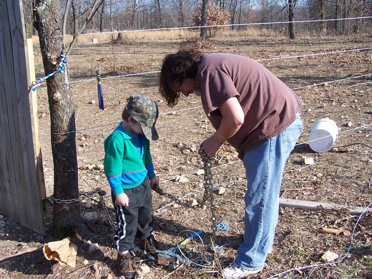 Working on a fence during the winter.